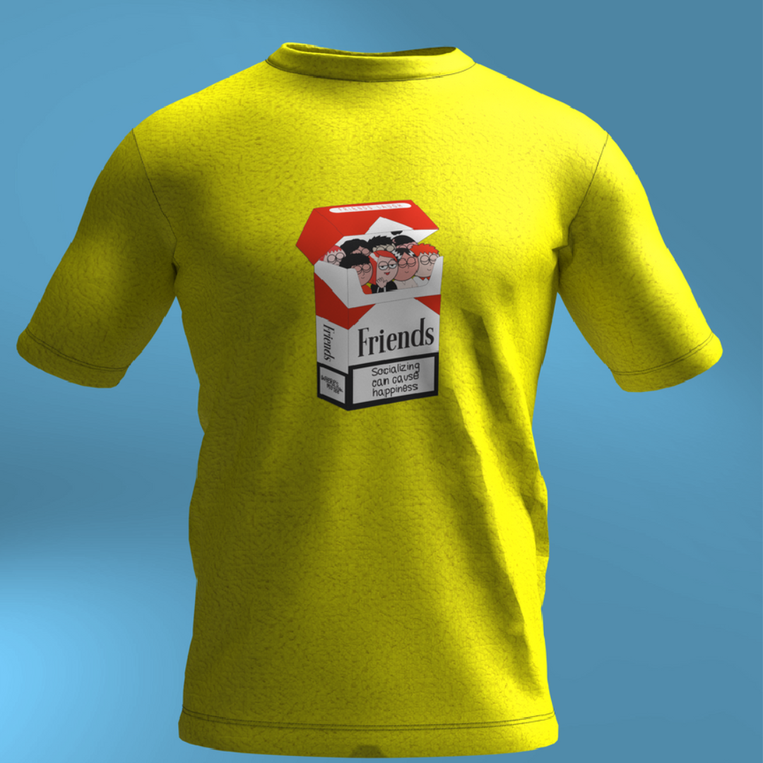 Introducing a thought-provoking design that combines vivid imagery with a powerful message. Our latest t-shirt features a striking yellow and light grey colour scheme, highlighted by a large, central print of a cigarette box—except, instead of cigarettes, it’s packed with a crowd of people. This eye-catching graphic challenges conventional views on smoking and highlights the impact of choices on human lives. Designed for those who aren’t afraid to make a statement and spark conversation, this tee is as impactful as it is stylish. The juxtaposition of vibrant colours and the compelling image makes it a standout piece that encourages reflection and dialogue. Wear this t-shirt to showcase your unique perspective and to remind others of the deeper implications behind everyday habits.